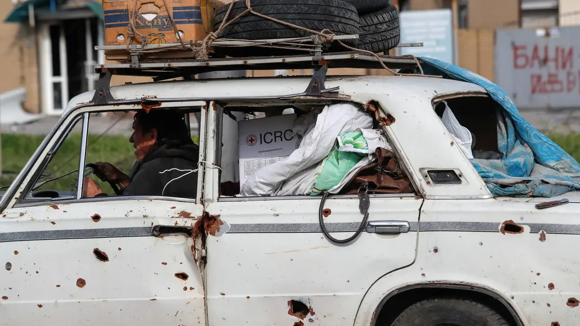 وكانت الأمم المتحدة واللجنة الدولية للصليب الأحمر نسقت عملية اجلاء من المدينة، لإخراج النساء والأطفال والمسنين من مصنع الصلب، بدأت في 29 أبرل الماضي، و استغرقت خمسة أيام. وقالت منسقة شؤون الإغاثة بالأمم المتحدة المعنية بأوكرانيا أوسنات لوبراني "بفضل تلك العملية، استطاع أخيرا 101 من النساء والرجال والأطفال والمسنين مغادرة المخابئ أسفل مجمع صلب آزوفستال ورؤية ضوء الشمس بعد شهرين من الحصار".