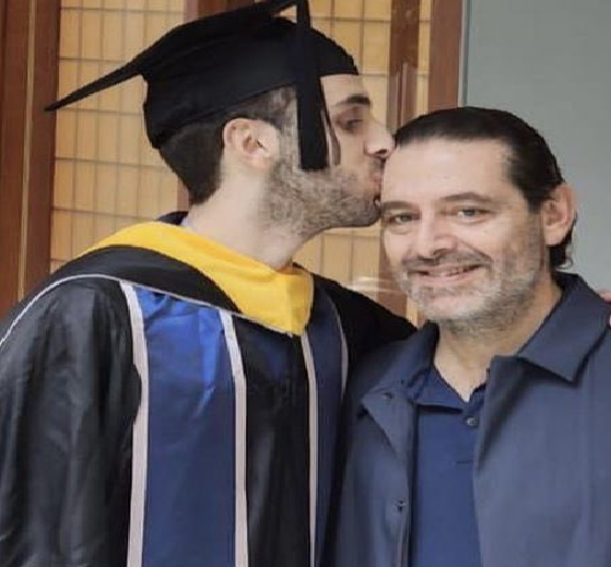 بالصورة- الحريري مع عائلته خلال حفل تخرج نجله.. و"قبلة" من الأخير!