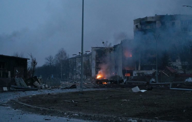 وسُمع دوي 4 انفجارات في ساعة مبكرة من الصباح في العاصمة الأوكرانية حيث أصيب مجمع سكني بالقرب من وسط المدينة ما أدى إلى اندلاع حريق وانبعاث سحابة كبيرة من الدخان الرمادي.