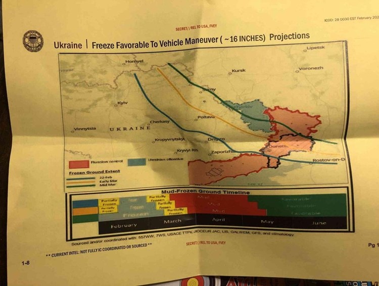 وتظهر الوثائق المنشورة وضعيات الجيش الأوكراني ورسوماً بيانية لتسليم الأسلحة المتوقع، وقدرات القوات والكتائب وأحجامها، وخططاً أخرى، فيما أقرّ مسؤولو البنتاغون بأنها وثائق شرعية لوزارة الدفاع.