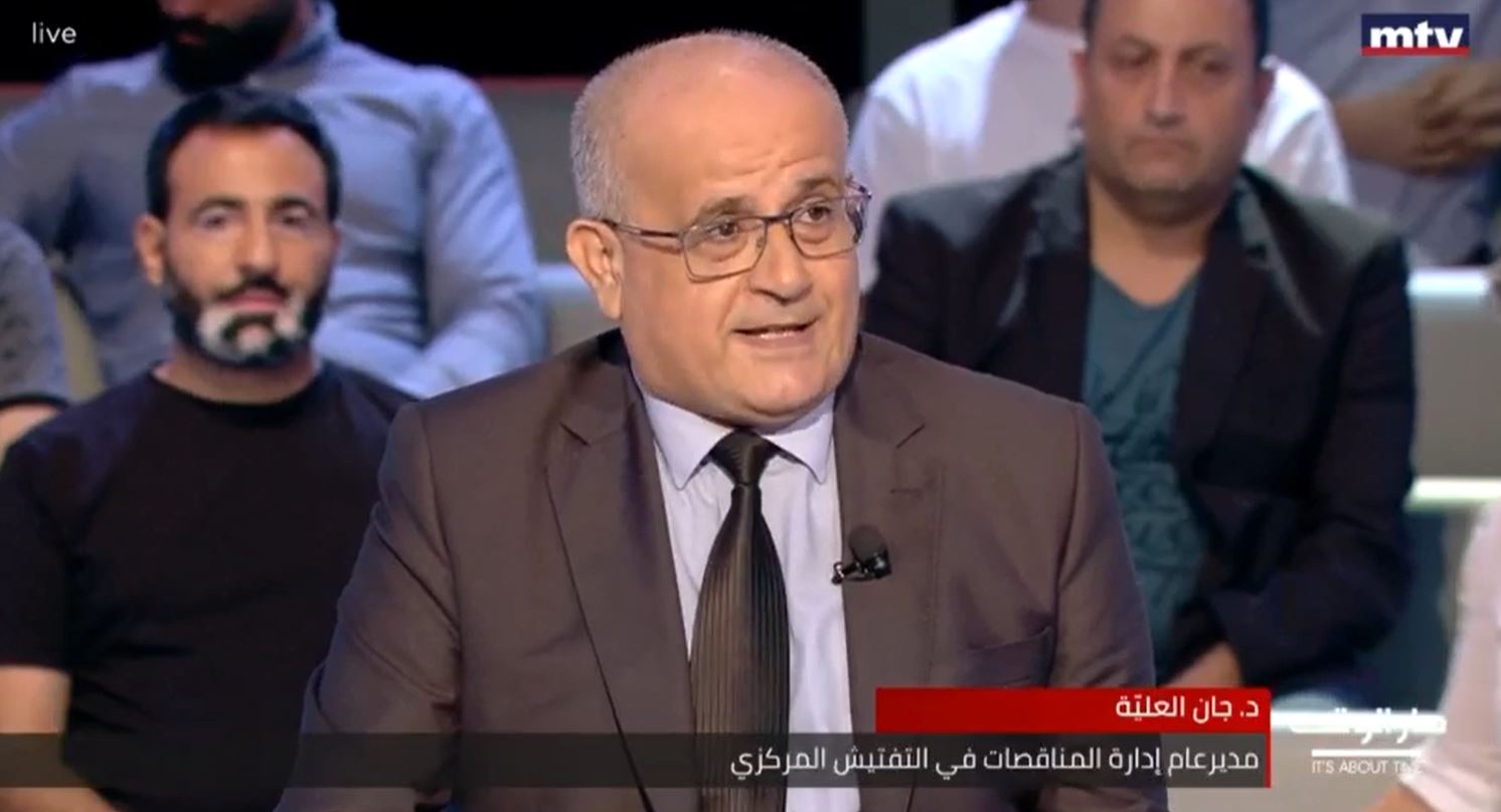 قال المدير العام لادارة المناقصات جان العلية في حديث لبرنامج صار الوقت عبر ام تي في انه قام بواجباته دفاعاً عن المال العام ودعوى الإفتراء ضده تفترض أنني أقول ما هو غير صحيح بقصد التشهير وأنا لم أشهّر بأحد وإذا كان المقصود تخويفي "ما بحياتن أهل الكهف بيخوّفوا أهل النور" وكشف العلية انه أبلغ وزير الاشغال بأنه لن يقبل بتغيير دفتر الشروط لمزايدة السوق الحرة في المطار وقد أكّد له الوزير حميه أنه لن يُمسّ أي حرف به