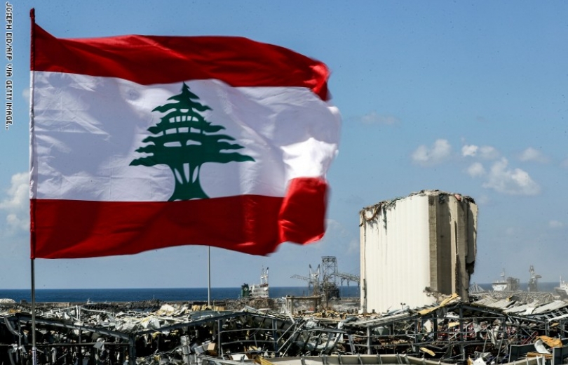 نعيم قاسم مع العلم اللبناني وعلم الحزب