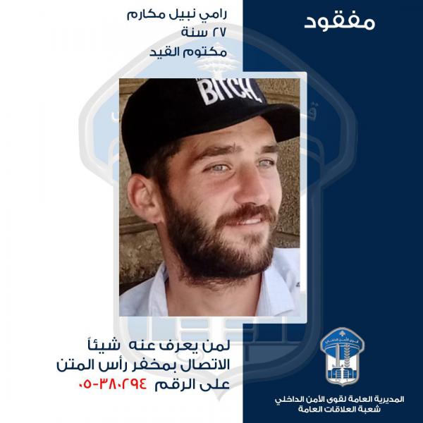 الذّي غادر بتاريخ 26-09-2022 منزله الكائن في محلة رأس المتن إلى جهة مجهولة، ولم يَعُد لغاية تاريخه. علمًا أنه يعاني من انفصام في الشخصية.
