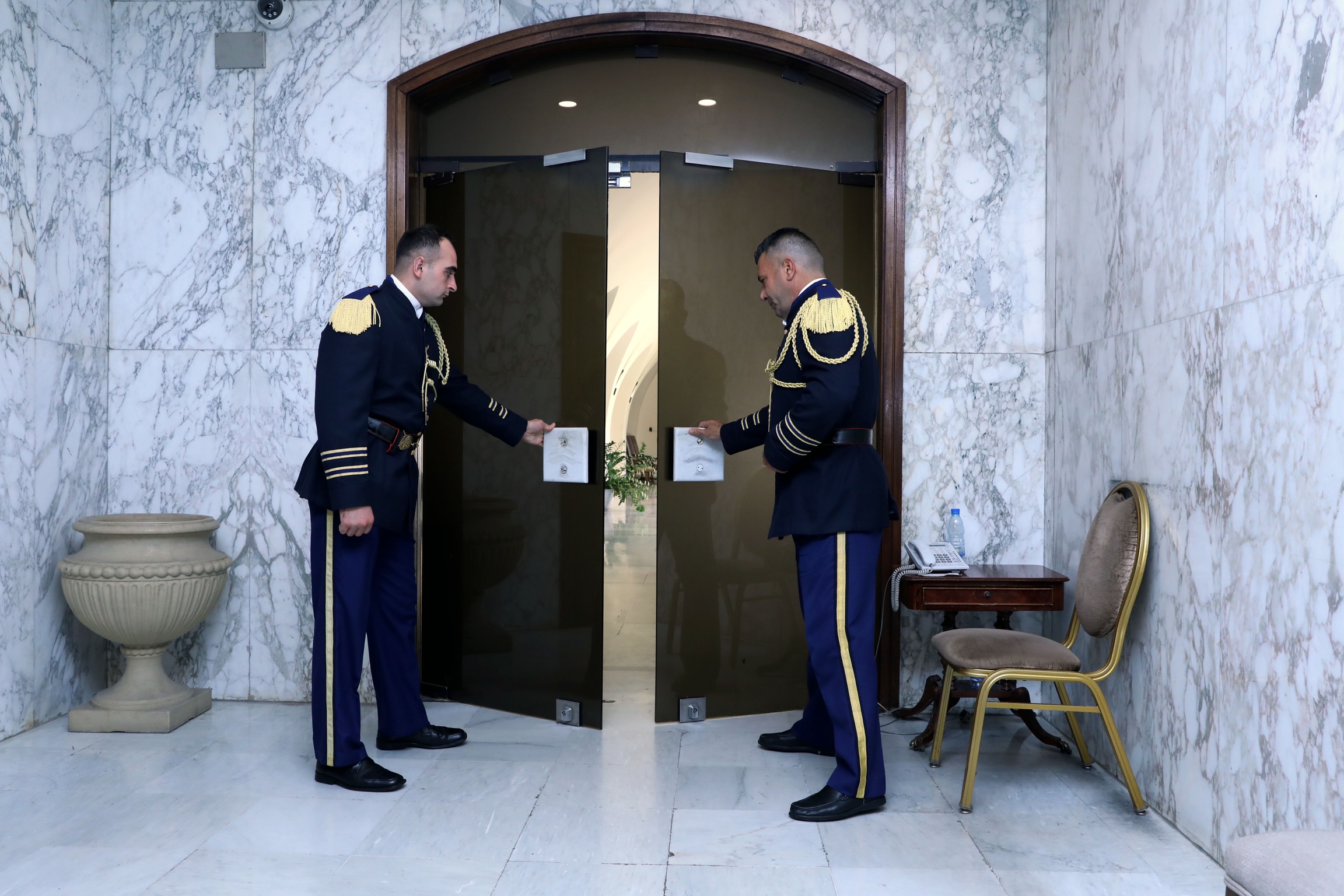 بدأت وقائع الاقفال في قاعة مجلس الوزراء، ثم مدخل الجناح الرئاسي وقاعات الاجتماعات الخاصة برئيس الجمهورية ومكتبه والابواب المؤدية اليه، لا سيما الباب الرئيسي مع الراية. بعد ذلك انتقل الجميع الى صالون السفراء حيث تم اقفاله، وكذلك صالون 22 تشرين وقاعة 25 أيار ومدخل جناح السكن الخاص بالرئيس. وعلى الأثر اطفىء البهو الرئيسي واقفل المدخل الرئيسي. وبعد ذلك تم انزال العلم اللبناني عن شرفة القصر وعن السارية الرئيسية في الساحة الخارجية وتوقفت نافورة المياه عن العمل إيذانا بعملية اقفال جناح رئيس الجمهورية.
