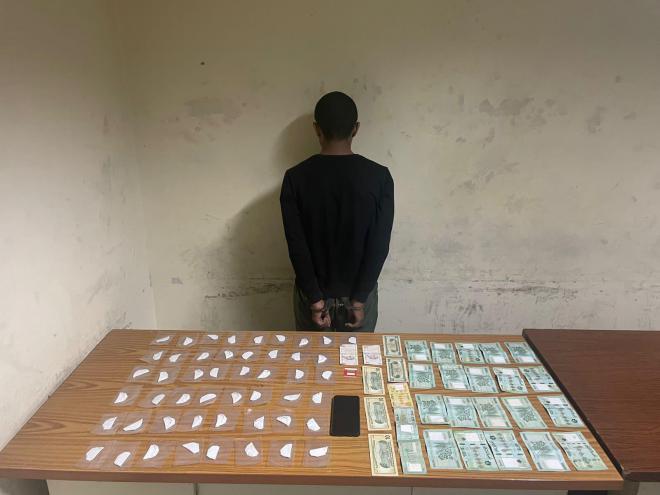 وبتاریخ 7/11/2022، وبعد عملية رصد ومراقبة دقيقة، نفّذت إحدى دوريات الشعبة مداهمة للشقة المذكورة في برج حمود، نتج عنها توقيف المروّج بداخلها. وبتفتيشها، تم ضبط: /49/ مظروفًا بداخله مادة الكوكايين، و/10/ ليرات تركية، ومبالغ مالية، وهاتف خلوي.