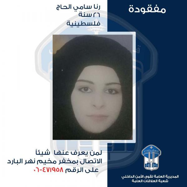 التي غادرت بتاريخ 1-12-2022 منزلها الكائن في مخيّم نهر البارد إلى جهةٍ مجهولة، ولم تَعُد لغاية تاريخه.