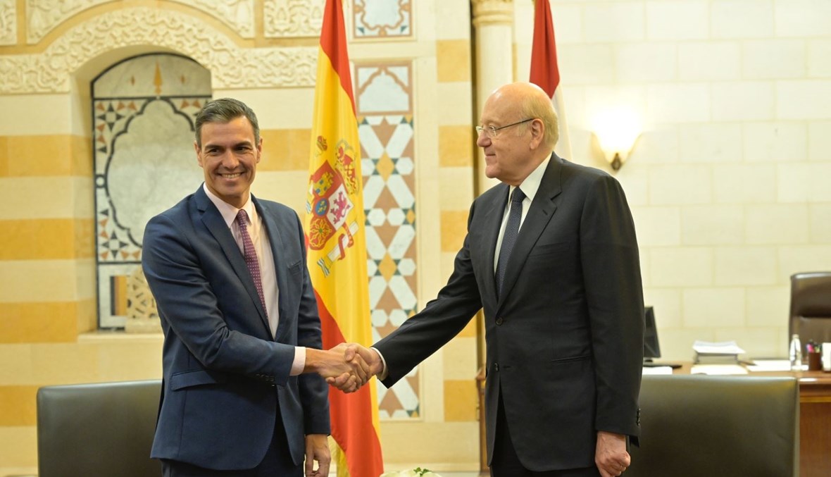 ووسط هذه الأجواء حط في بيروت امس رئيس الوزراء الاسباني بيدرو سانشيز مفتقدا الوحدة الاسبانية العاملة ضمن قوة اليونيفيل. وبدا واضحا ان حادث استهداف الكتيبة الايرلندية طغى على أجواء الزيارة اذ جدد ميقاتي بعد لقائه سانشيز تاكيد التزام لبنان كل مندرجات القرار 1701 والعمل الحثيث على تطبيقها، مشددا على”ان كل السلطات الأمنية والعسكرية والقضائية ، لم تتوان ولن تتوانى، ولو للحظة عن القيام بواجباتها كافة لناحية معرفة هوية مطلقي النار على آلية اليونيفيل قبل اسبوعين وتقديمهم للعدالة لينالوا جزاءهم”. وعقد ميقاتي وسانشيز في السرايا خلوة تلتها المحادثات الرسمية الموسعة بمشاركة اعضاء الوفدين. وخلال المحادثات تحدث ميقاتي معتبرا الزيارة “تأكيد اضافي على التضامن الدولي مع لبنان والدعم الذي لا بديل عنه لينهض من كبوته”. وقال :”إنني اؤكد أمامكم، ما سبق وأكدته لقائد قوات اليونيفيل الذي انتدبتموه مشكورا لقيادة هذه القوات، ان كل السلطات الأمنية والعسكرية والقضائية ، لم تتوان ولن تتوانى، ولو للحظة عن القيام بواجباتها كافة لناحية معرفة هوية مطلقي النار على آلية اليونيفيل قبل اسبوعين ما ادى الى فقد عنصر من الكتيبة الايرلندية في قوات حفظ السلام، واصابة رفاق له بجروح، وتقديمهم للعدالة لينالوا جزاءهم. وانتهز فرصة وجودكم اليوم في لبنان ، لأكرر امامكم ما صرتم تعرفونه، ان ما يزيد من وزر الضائقة الاقتصادية الخانقة في لبنان هو وجود اعداد كبيرة من النازحين السوريين واللاجئين الفلسطينيين على الأراضي اللبنانية وتبعات هذا الوجود على الأمن والأستقرار والاقتصاد”.