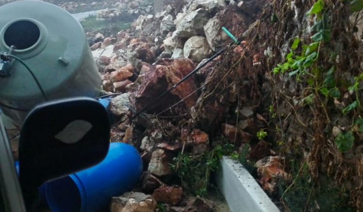 كذلك انهار حائط دعم على السيارات والمباني المجاورة في بلدة قناريت واقتصرت الأضرار على الماديات.