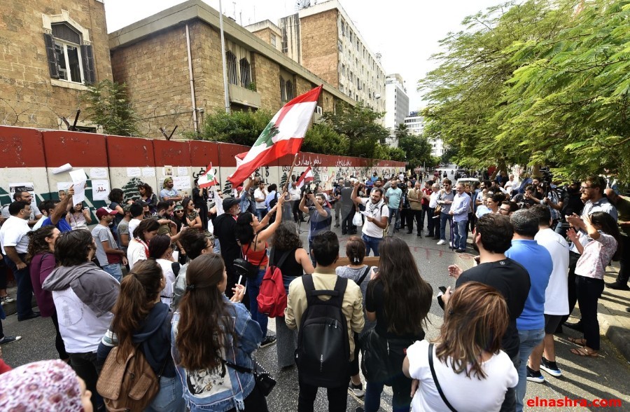 ويطلق المعتصمون المفرقعات النارية في اتجاه مصرف لبنان، وقد حاول البعض إشعال الاطارات