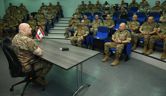 أضاف: "لا يزال لبنان متماسكا بفضل إيمانكم بقدسية المهمة، ولا تزال الدول الصديقة تمد يد العون للجيش. إن ثقة اللبنانيين والمجتمع الدولي بالمؤسسة العسكرية لم تأت من فراغ، بل هي نتيجة مباشرة لإنجازاتكم. لذا، ينبغي الحفاظ عليها بأي ثمن. لقد أثبتم مع رفاقكم في بقية الوحدات جدارتكم وكفاءتكم خلال السنوات الثلاث الماضية المليئة بالتحديات. سيذكر التاريخ أنكم أنقذتم لبنان وحققتم إنجازات كبيرة بالإمكانات القليلة المتوافرة".