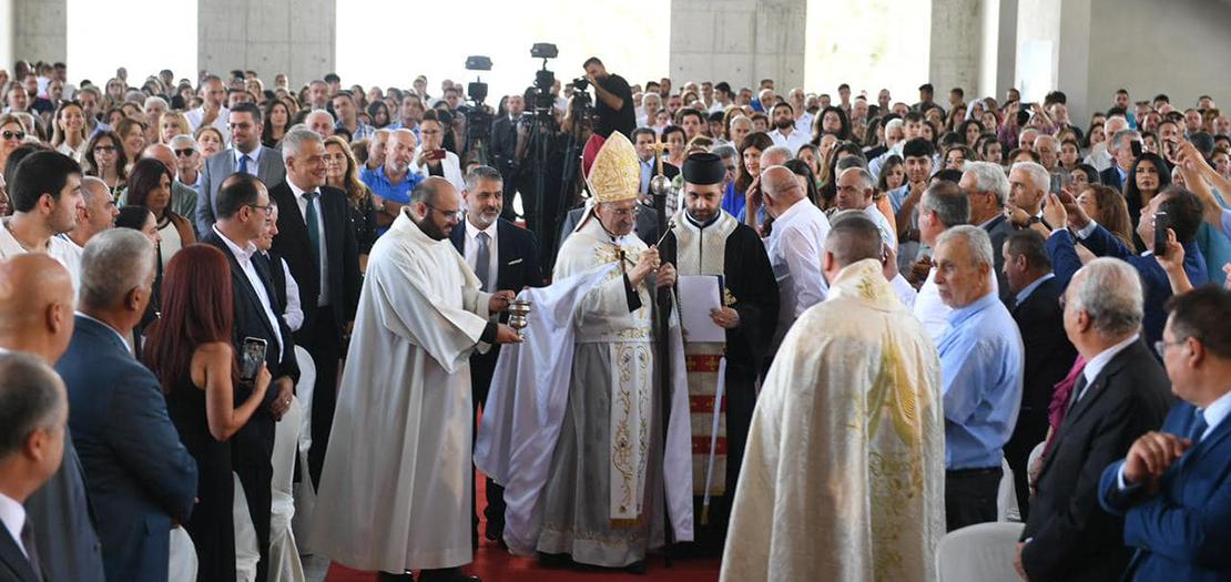 أضاف: "يطيب لي مع سيادة أخينا المطران أنطوان بو نجم، راعي الأبرشية الغيور، ومع سيادة المطران سمير مظلوم إبن البلدة المحب، ومع سيادة السفير البابوي والسادة المطارنة، أن نحتفل مع كاهن الرعية ومعكم بهذا التكريس، وأن نقدم هذه الذبيحة الإلهية على نيتكم جميعا، ولا سيما الذين لهم تضحيات من أي نوع في إنجاز هذا المجمع الراعوي الكبير والجميل. عنيت بهم عزيزنا المهندس رمزي سليم مظلوم صاحب شركة RAMACO وشقيقيه وشقيقته شركاءه، مع الشكر والتقدير على هبة العقار وجميع أعمال البناء. وأوجه تحية شكر إلى لجنة بناء الكنيسة ومجمعها، برئاسة سيادة أخينا المطران سمير مظلوم، وعضوية أربعة من خيرة أبناء البلدة. كافأ الله الجميع بفيض من نعمه وبركاته".
