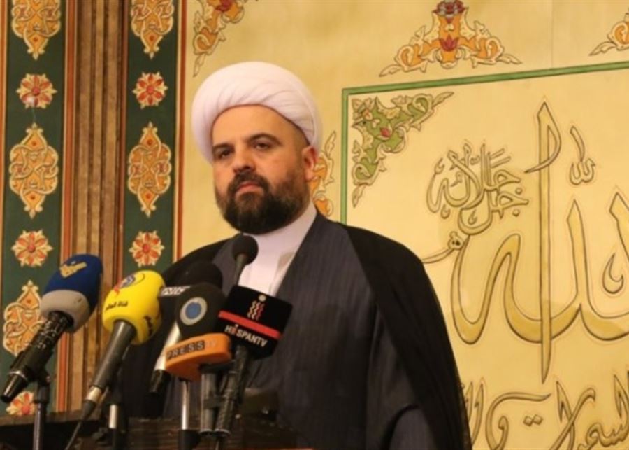 ختم:" اليوم لبنان في القعر، والشلل يطال كل البلد، ومفتاح الإنقاذ يمر بتسوية سياسية، والرئيس نبيه بري ضمانة وطنية للإنقاذ الرئاسي، ولا إمكان لإطلاق عمل المؤسسات إلا بانتخاب رئيس، والكرت الأحمر بوجه التسوية الوطنية عار، والرمادية تضع لبنان في المأزق، وما زال موسى الصدر يقول للكنيسة والمسجد: القطيعة حرام، والفراغ السياسي تفريغ للبنان، وتحكيم العالم بمصير لبنان خيانة للبنان ونحر لشعبه ودولته ومؤسساته".