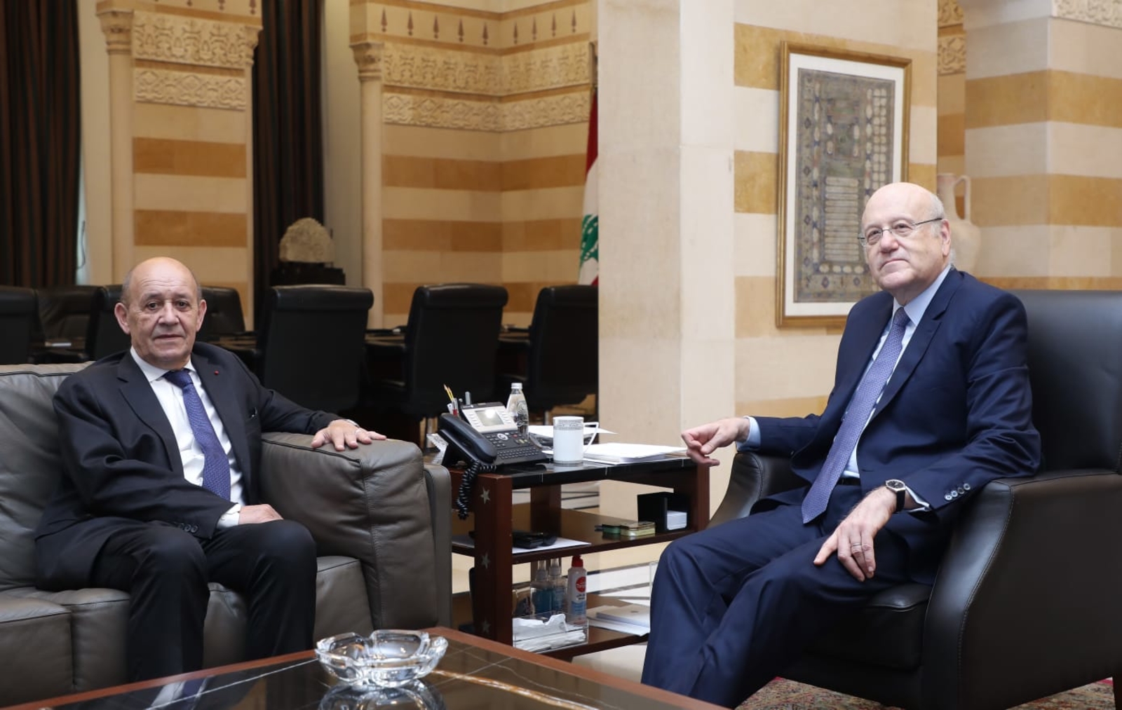 إستقبل رئيس الحكومة نجيب ميقاتي موفد الرئيس الفرنسي إيمانويل ماكرون الوزير السابق جان ايف لودريان قبل ظهر اليوم في السرايا.